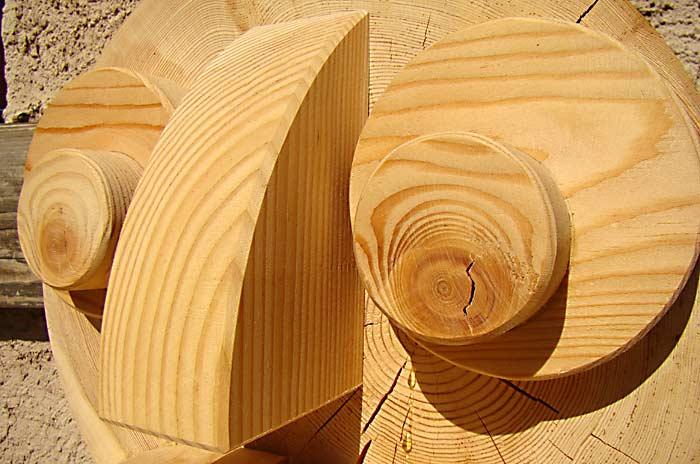 Realizzate principalmente con tronchi in legno di larice non trattato, lavorato a mano in modo semplice, con caratteri decisi, senza utilizzo di sgorbie e scalpelli.