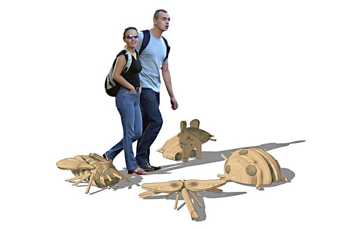 Ogni opera creata rappresenta un esemplare di design unico. La collezione comprende animali grandi e piccoli, con particolare risalto al mondo degli insetti. Il singolare dimensionamento, senza alcuna corrispondenza alla reale dimensione in natura, è stato concepito per creare un forte impatto visivo e per una facile trasportabilità.
